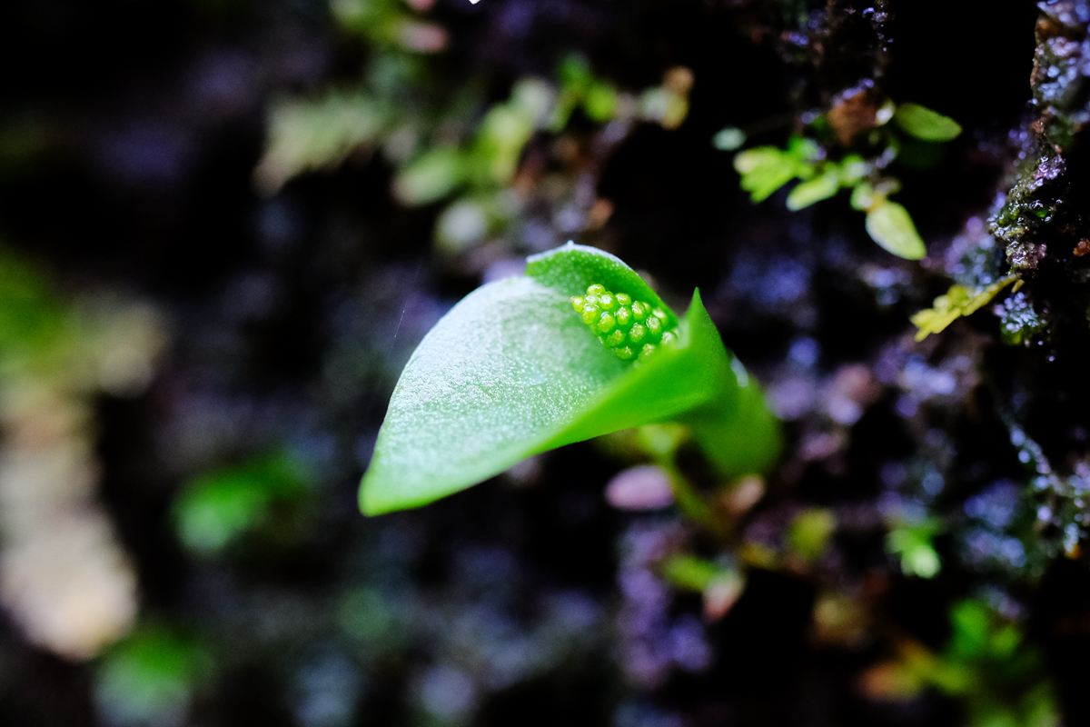 当日,天气依旧晴好,我先到卖柴岙水库,没找到鸳鸯——前段时间听朋友说这里有不少鸳鸯越冬。倒是在一块属于丹霞地貌的正在滴水的巨岩上,见到很多刚萌生出来的兰科植物小沼兰。这种微小的野生兰花的盛花期在3月底到4月,不过那天我注意到少数小沼兰已在孕育花苞。