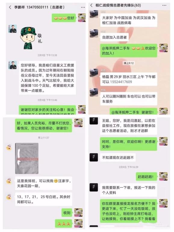 自本溪桓仁县妇联2月9日疫情防控巾帼志愿者招募令发布以来,百名群众纷纷响应,“男同志可以加入吗”“我年龄大点可以吗”“我现在没在桓仁,可以出点力吗”“我在医院工作,不是白班的时候可以去”“人、车随叫随到”……太多太多感人的声音!