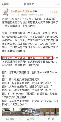要说最有学问的赠语,当属数日本驻华大使馆官微引用的古文:“同舟渡海,中流遇风,救患若一,所忧同也。”这句中国人都不太熟悉的古文出自《邓析子·无厚篇》。此时,新冠病毒在日本已经蔓延了,日本大使馆引用的这句古文也充分表达出这种同舟共济、患难与共之意:现在大家是同坐一条船渡海,中途遇到风雨,我们团结起来像一个人,因为忧虑是相同的。