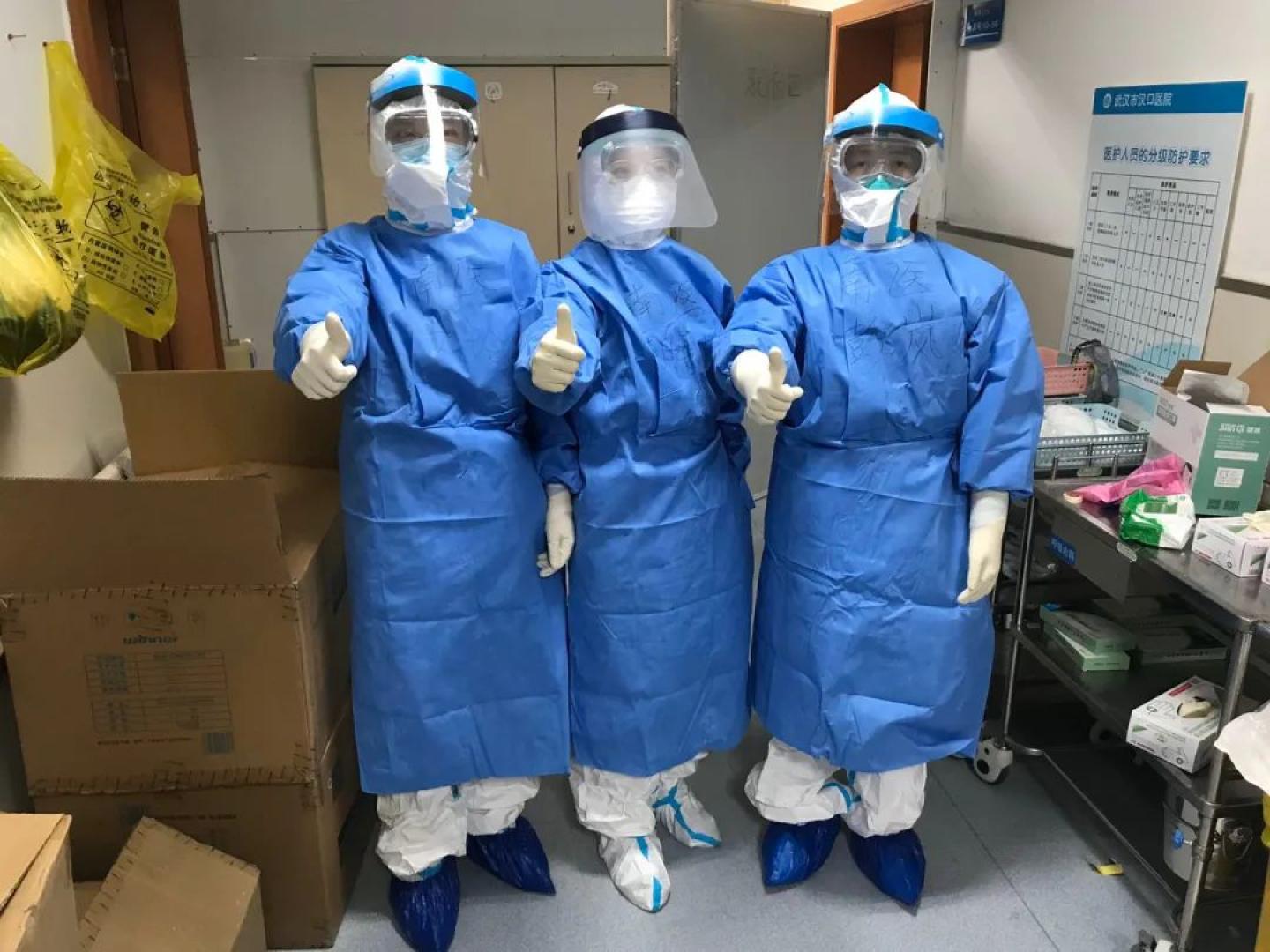 初到汉口医院,条件确实艰苦。病区入口临时用两个大柜子搭建的缓冲区,从清洁区到污染区之间几道墙壁并不密封,缓冲间里面没有照明灯,队友们只能摸黑脱去防护服,这给进入病房工作的队友带来很大挑战。
