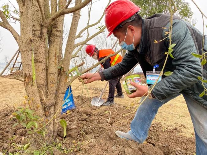 核实身份、测量体温、记录信息、上岗复工……2月25日,四川路桥涪江六桥项目部的工人们有序在工地唯一入口进行体温检测登记后,投入到了放线和植物栽种的收尾工作中,为即将进行的钢栈桥搭设做施工准备。