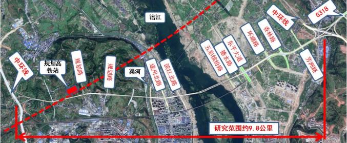 涪江六桥项目起于遂宁城区城北渠河以西,向东跨越渠河后沿宏桥街走廊布设高架桥依次上跨渠河路、遂州北路、滨江北路、河西防洪堤后,设涪江六桥特大桥跨越涪江至涪江东岸,继续上跨五彩滨纷路,沿永兴大道走廊设下沉式隧道穿越东平大道至项目终点(永兴镇)。路线全长3186米,其中,涪江六桥特大桥全长1738米,主桥长748米,最大跨径328米,项目采用一级公路标准建设,同步配套市政设施、非机动车道和人行道系统,设计速度60公里/小时,项目总投资约19亿元,施工工期1100天。