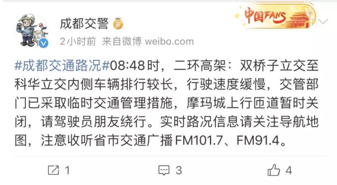 18天来成都交警首发“堵车”