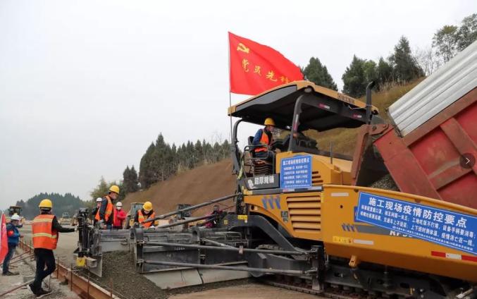18日8时30分,30余台摊铺机、压路机、装载机开进了成都天府国际机场高速公路K36+500工地,65名中国中铁建设者打破了工地的沉寂。
