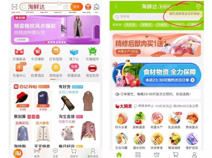在应用商店下载手机淘宝app,首先登录后→搜索“淘鲜达”(图1)→点击后→“请先选择想送达的地址”(图2),就可选购你自己想要的商品了,购买后→等待配送就可以了哦。