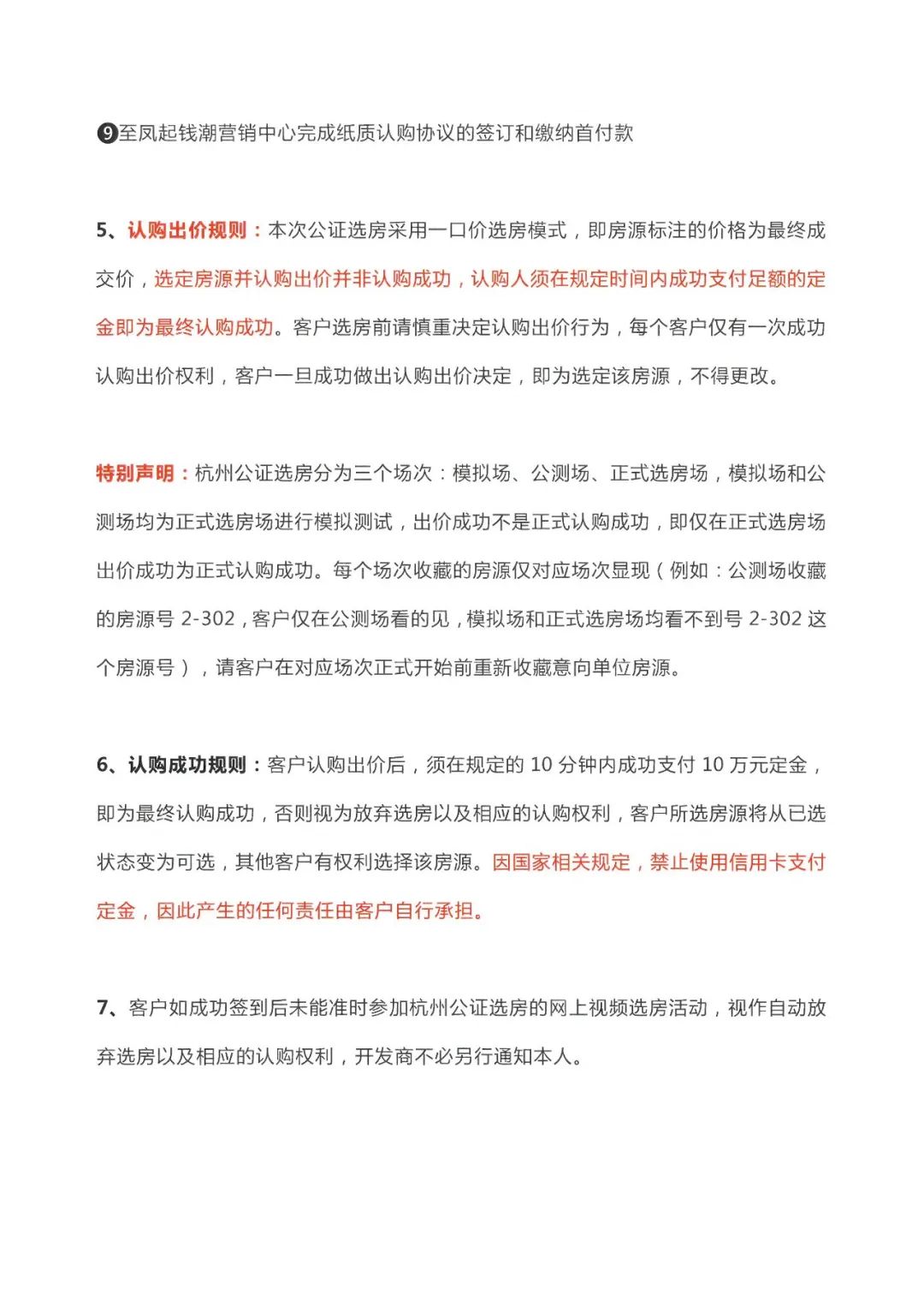 《通知》明确,网上公证摇号结果公示无异议后,房地产开发企业应为购房者提供网上视频选房的服务,以视频会议形式组织购房者按顺序远程网上选房,并设置电子认购、定金支付等配套功能,保障选房结果的有效性。房地产开发企业应确保选房过程公开透明、程序严谨。
