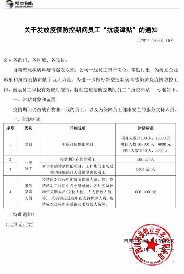 ︱邦泰物业发放“抗疫”津贴︱