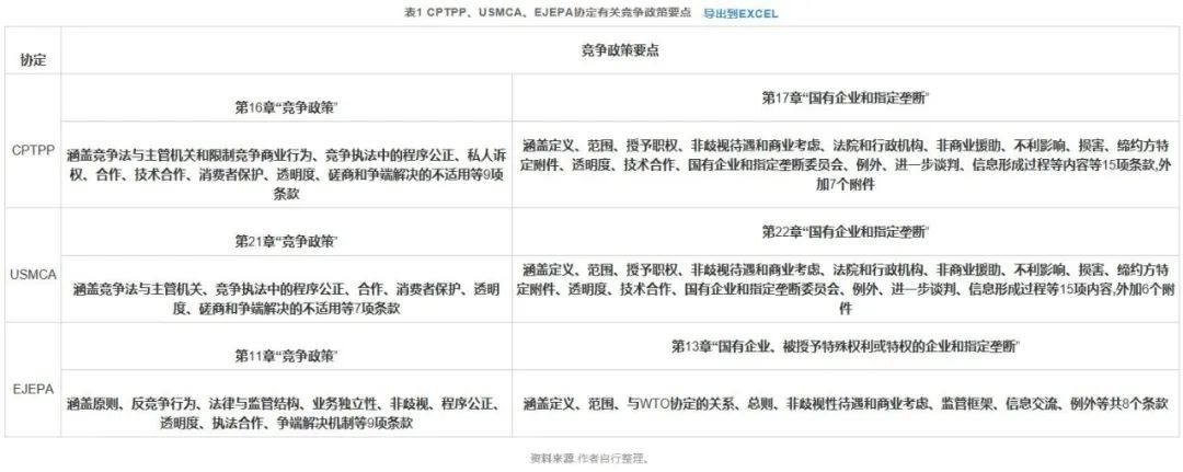 (一)CPTPP、USMCA、EJEPA协定主要情况及有关竞争政策的要点