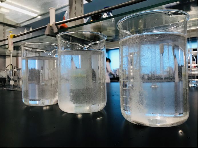 博凯药业有限公司技术部副总 雷天乾:84消毒液的pH值偏高(属强碱性),我们这个(泡腾片)是偏酸性,pH值基本在5-6之间,在我们这泡腾片中是以次氯酸的形式存在,而不是次氯酸钠的形式,所以我们这个效果比84消毒液强几十倍。