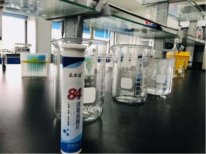 2019年年底,博凯药业有限公司组织技术人员进行研发,在保证84消毒泡腾片效果的前提下,基本解决了消毒液的不足。不仅运输安全,便于携带和存放,而且安全性高,刺激性气味小,消毒杀菌的能力更是高出消毒液的几十倍。