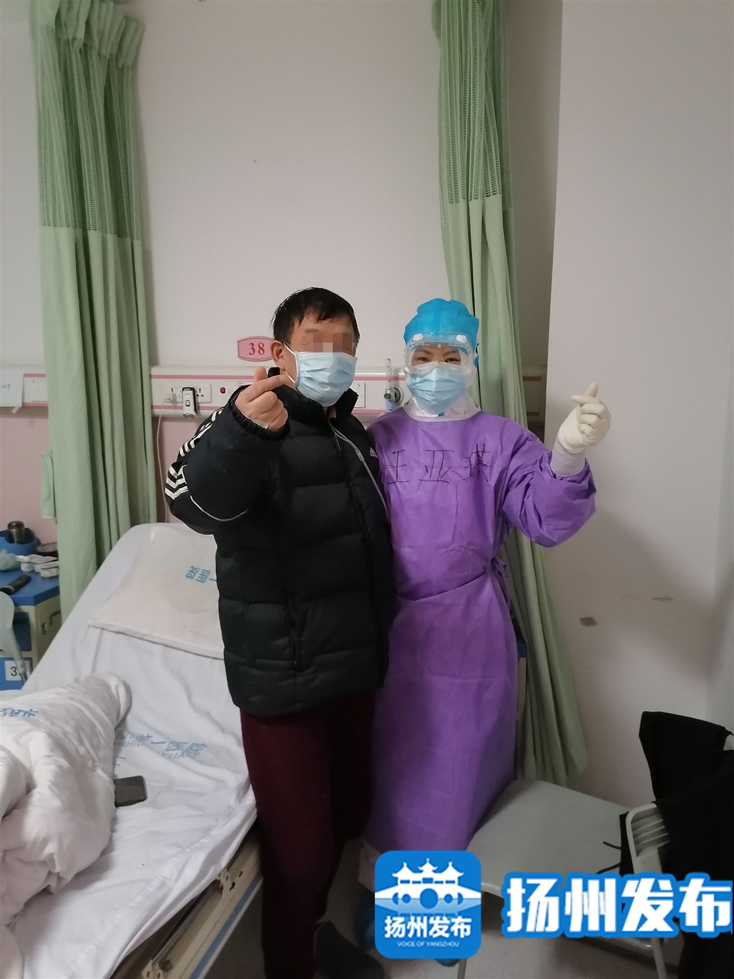 医生给21床的阿姨下了病危,因为前两天头晕血压有点低,阿姨很害怕。王亚琪跟阿姨交流才知道,她的老伴已经离开了。“阿姨说,她就害怕血压低,老伴走的时候血压42/20多,她也害怕自己就这么离开。”得知了阿姨的担忧,王亚琪与姐妹们轮流对阿姨进行心理疏导。今天,阿姨的精神状态好多了,给她测量血压的时候,家里人来视频了,说着武汉话。在湖北呆过两年的王亚琪听懂了,阿姨是让家里人放心,说自己在这里一切都好,病情每天都有好转。她还对家人说,扬州的小姑娘可好了,真心的好。“当时我听着特别开心。”王亚琪说。