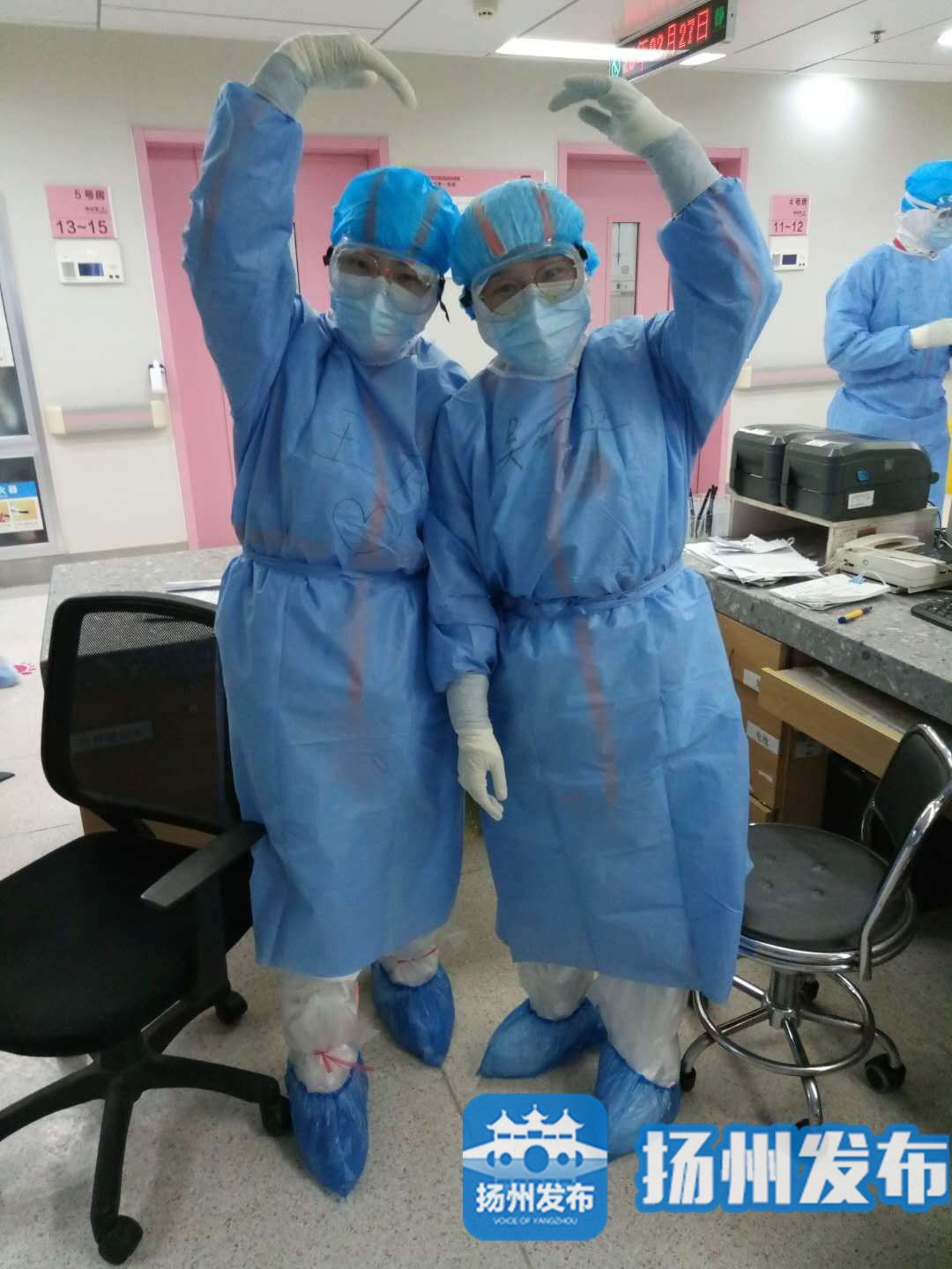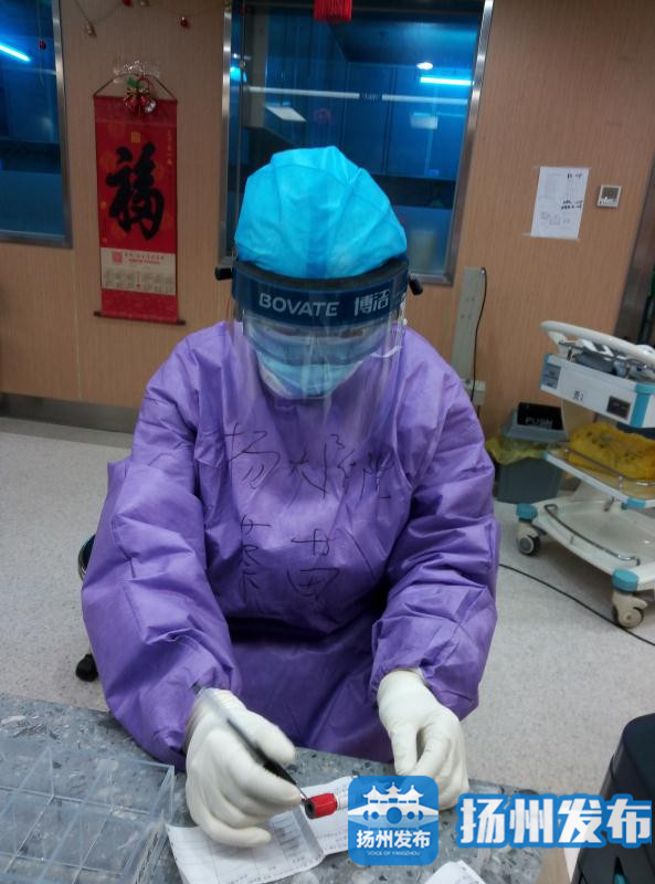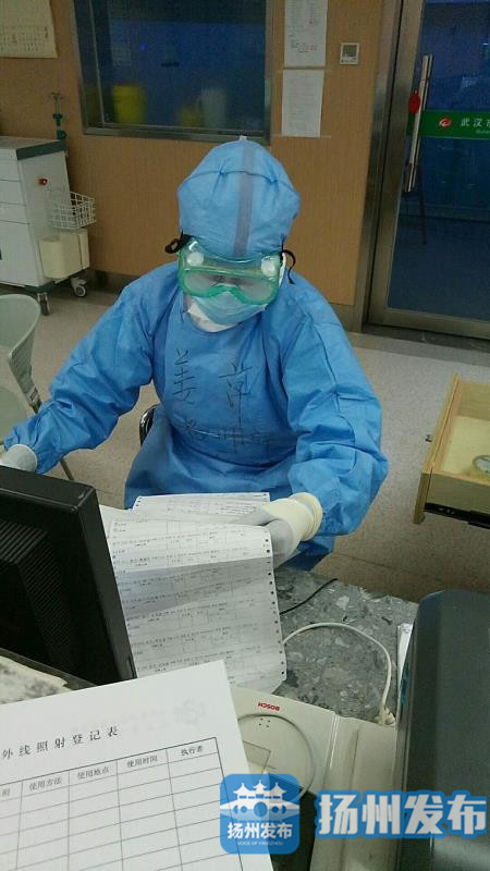 “你们好,来武汉已有一个多星期了,我在这里很好。生活上物质很充足。还有暖心的扬州大厨为我们制作美味的扬州美食。工作上我已步入正轨,其实和家工作差不多,只是多了几层防护服,你们放心吧,我可以的。