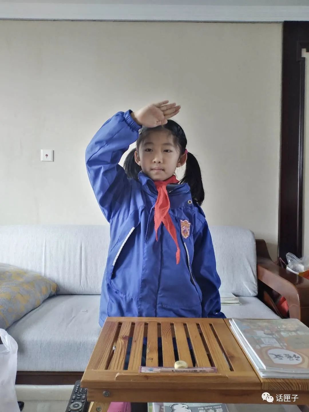 4.每日早上升旗仪式,提醒孩子庄严认真对待,升国旗时,佩戴领巾,立正敬礼。