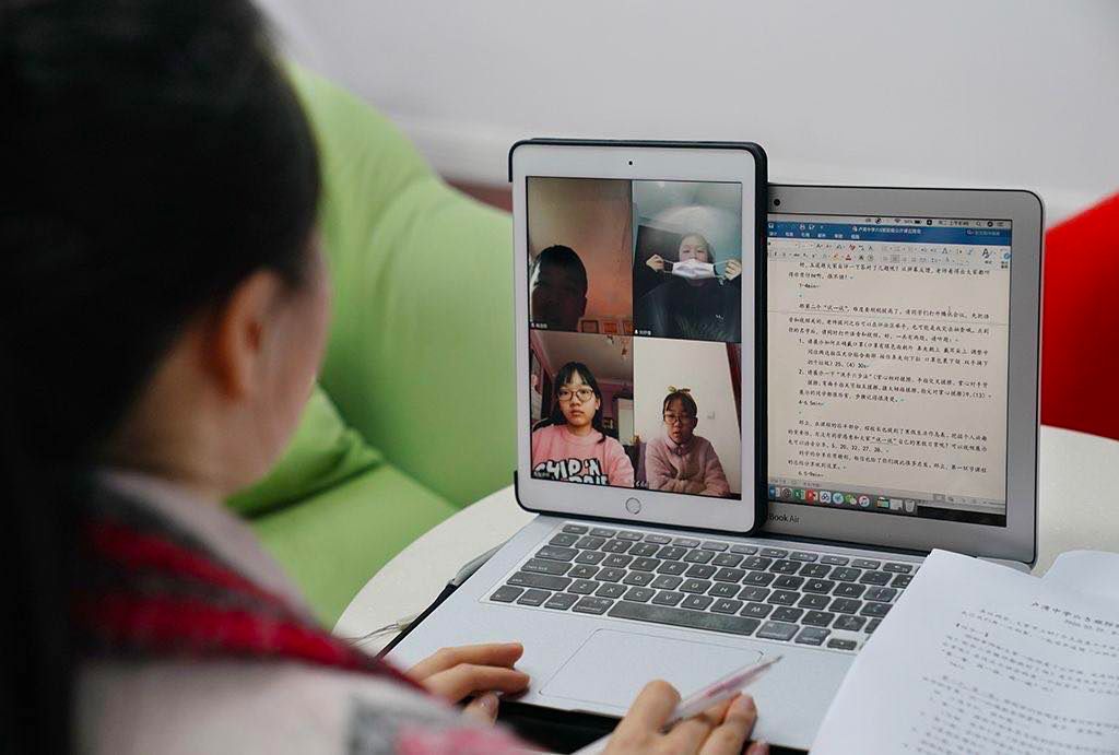 “两个人都要直播,一没设备,二没资料,三没技术,四担心两人课表冲堂,五则是孩子可能也要在线学习……”马红国老师把本已拆掉丢弃在院子的电脑又组装起来,从叔叔家翻来倒去找到一个扩音器上的话筒,拜托深圳同事快递了耳机、摄像头等设备。设备凑齐后,便开始学习网课相关技术,两人还经常探讨在平台如何与学生互动、如何提交课堂练习等。“通过沟通,刘老师的课安排在上午8:00-9:50,我的课10:30-11:30,幸好一年级的儿子不开网课,只需线下学习。”可即便如此,马老师一家人还是忙得焦头烂额,儿子的作业也只能部分放弃。