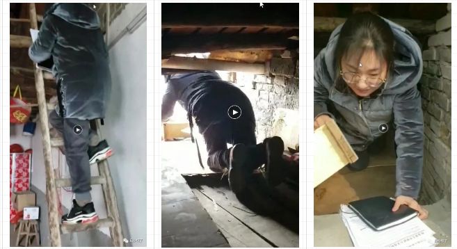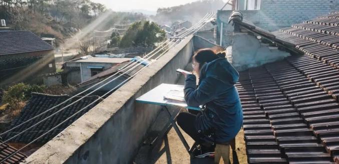 滞留在黄冈红安县乡下的深圳明德实验学校碧海校区初中老师陈露一手抓着稿纸、一手抓着小板凳,先爬上一个颤颤巍巍的梯子到阁楼,然后匍匐前进,从一个小口钻出来到屋顶,终于到达了上课地点——天台,这里是全家网络信号最好的地方。
