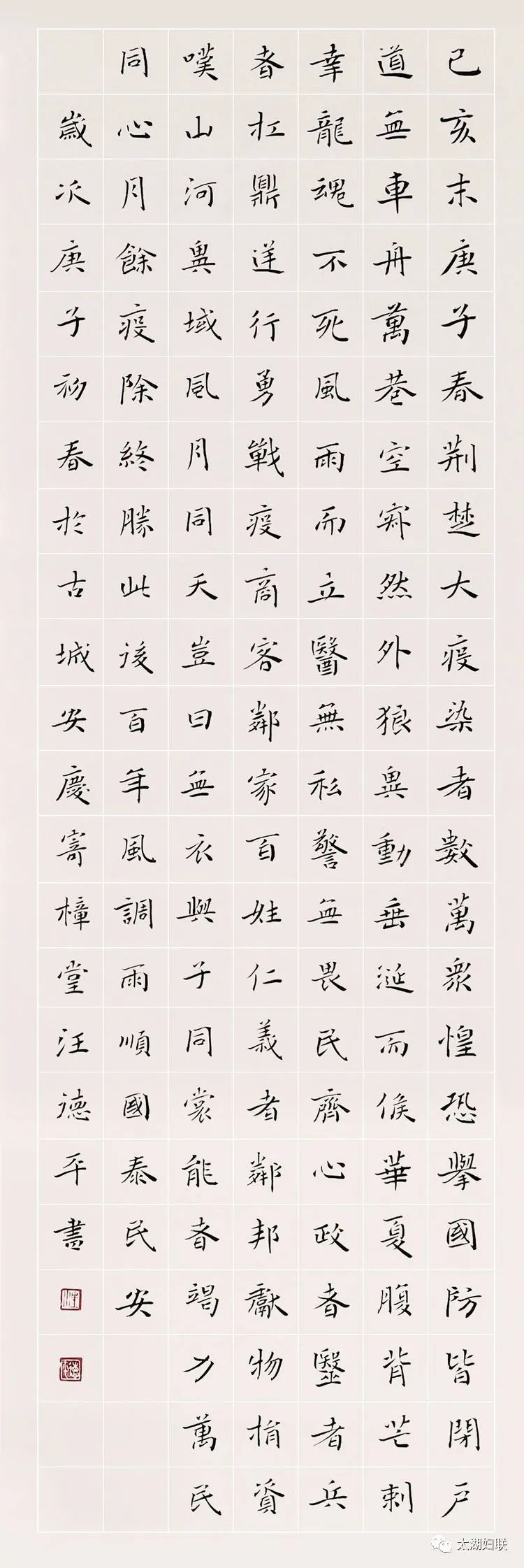 太湖县文联组织广大文艺工作者,通过多种文艺形式歌颂党的坚强领导,赞颂奔赴第一线的医务工作者,鼓舞全社会各界勠力同心抗击疫情,太湖籍的四位书法名家,中国书法家协会会员汪德平、吕舟根、陈良敏、叶核成,虽然身居全国各地,但是他们心系灾情,相约一起,以浓郁的笔墨情怀,精心创作抗击疫情主题书法作品24幅,以书法传递真情,用艺术凝聚心力,讴歌时代英雄,为抗疫前线将士鼓与呼!