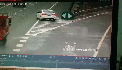 2月28日,江苏盐靖高速公路上,一辆白色轿车突然开到了高速出口导流线上,随后突然向左变道驶上高速主线慢车道上。这一突然的行为导致一辆正常行驶的重型货车紧急减速并向左侧快车道上躲避。快车道上一辆正常行驶的小车来不及避让,径直撞上了货车上,导致小车司机及车上两名乘客受伤。