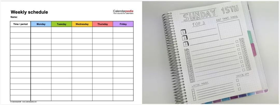 中阶版:可以考虑从使用单张的time schedule到纸质笔记本过度。