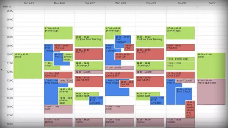 比如,我曾经给一位大二的学生教中文,她用谷歌日历安排自己每天、每周要完成的事情。
