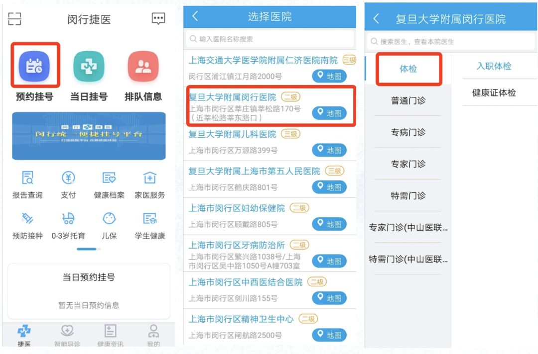 4.“闵行捷医”平台预约
