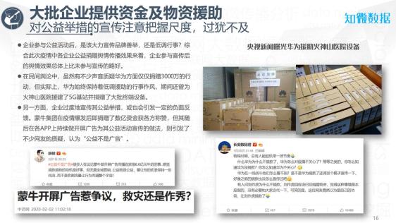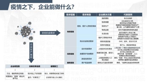 疫情之下,企业能做什么?我们从物资、信息、服务等多个层面出发,分析了防控抗疫中数百家企业的行动,经过对数十万数据的梳理、总结,发布《新冠肺炎疫情期间企业行为的得与失》分析报告,为企业如何应对可能遇到的舆情风险提供建议。