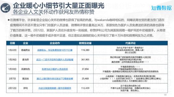 除了巨额的捐款和大规模的物资援助外,不少企业也因疫情期间某些微小但却温暖的动作,获得了网友的一致好评,为企业品牌博得了不错的口碑。