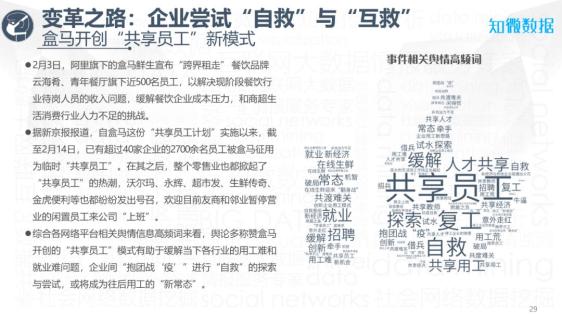 在受影响尤为严重的餐饮业,多数企业都选择了以外卖配送的方式复工营业,盒马更是开创了“共享员工”的新模式。