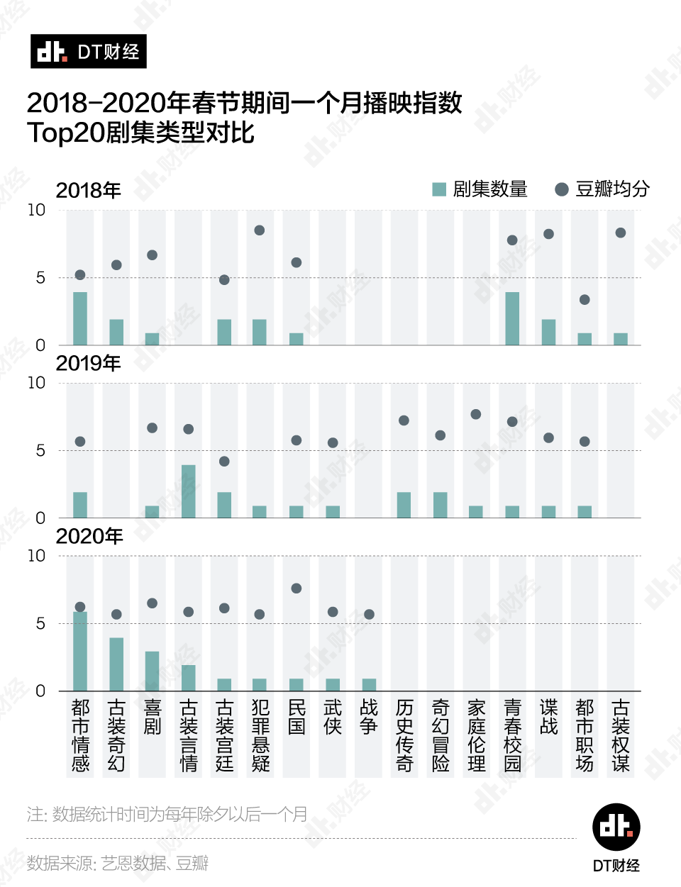 首先从类型上,今年这些作品,可以说集聚了过往3年以来口碑极其容易暴雷的两大类型:都市情感和古装奇幻——20部里足足有一半都是这两类作品。