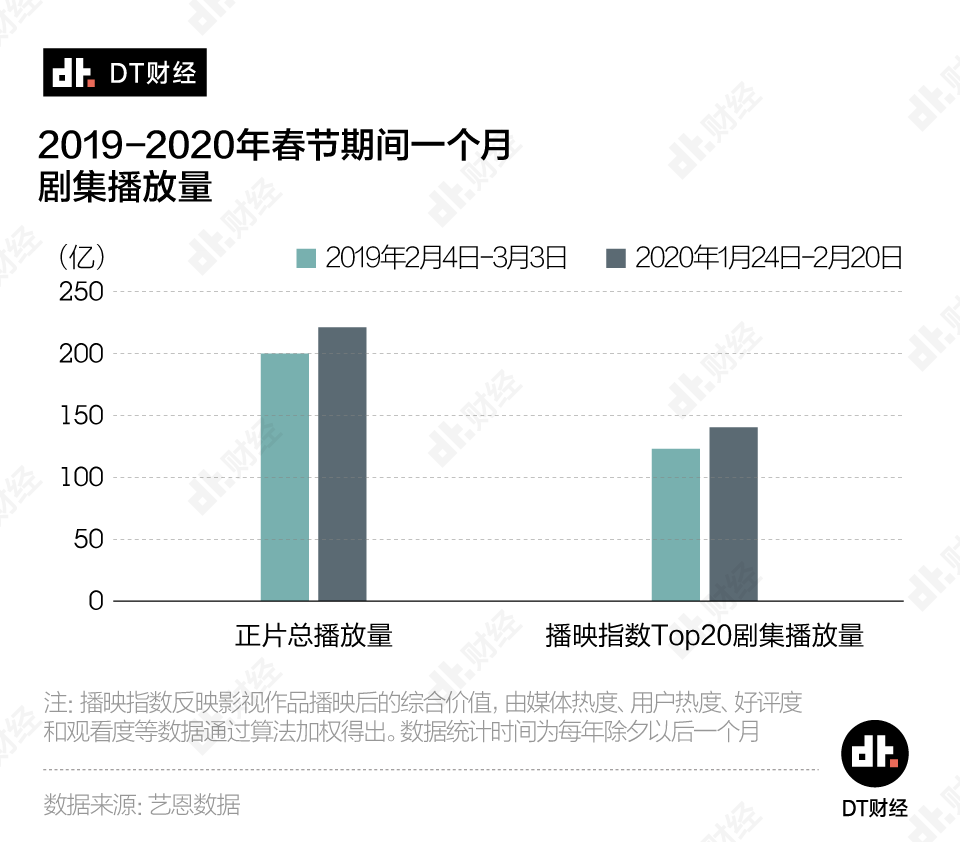 根据艺恩数据,除夕之后全民宅家刷剧的这一个月,剧集全网总播放量只比去年同期上涨了11.1%,而TOP20剧集的总播放量也仅仅上升了14.9%——跟其他动辄日活翻倍的线上娱乐方式比起来,算得上是惨淡。