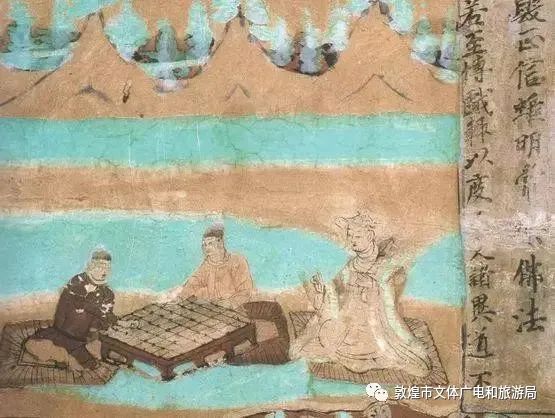敦煌石窟中已知的“对弈图”有三幅:莫高窟第61窟(五代)西壁佛传故事画中屏风画第21扇,绘有《悉达多太子对弈图》;第454窟(宋)东壁门北上部的《维摩诘经变》中有一幅《对弈图》;榆林窟第32窟(五代)北壁的《维摩诘经变》中也有一幅《对弈图》。