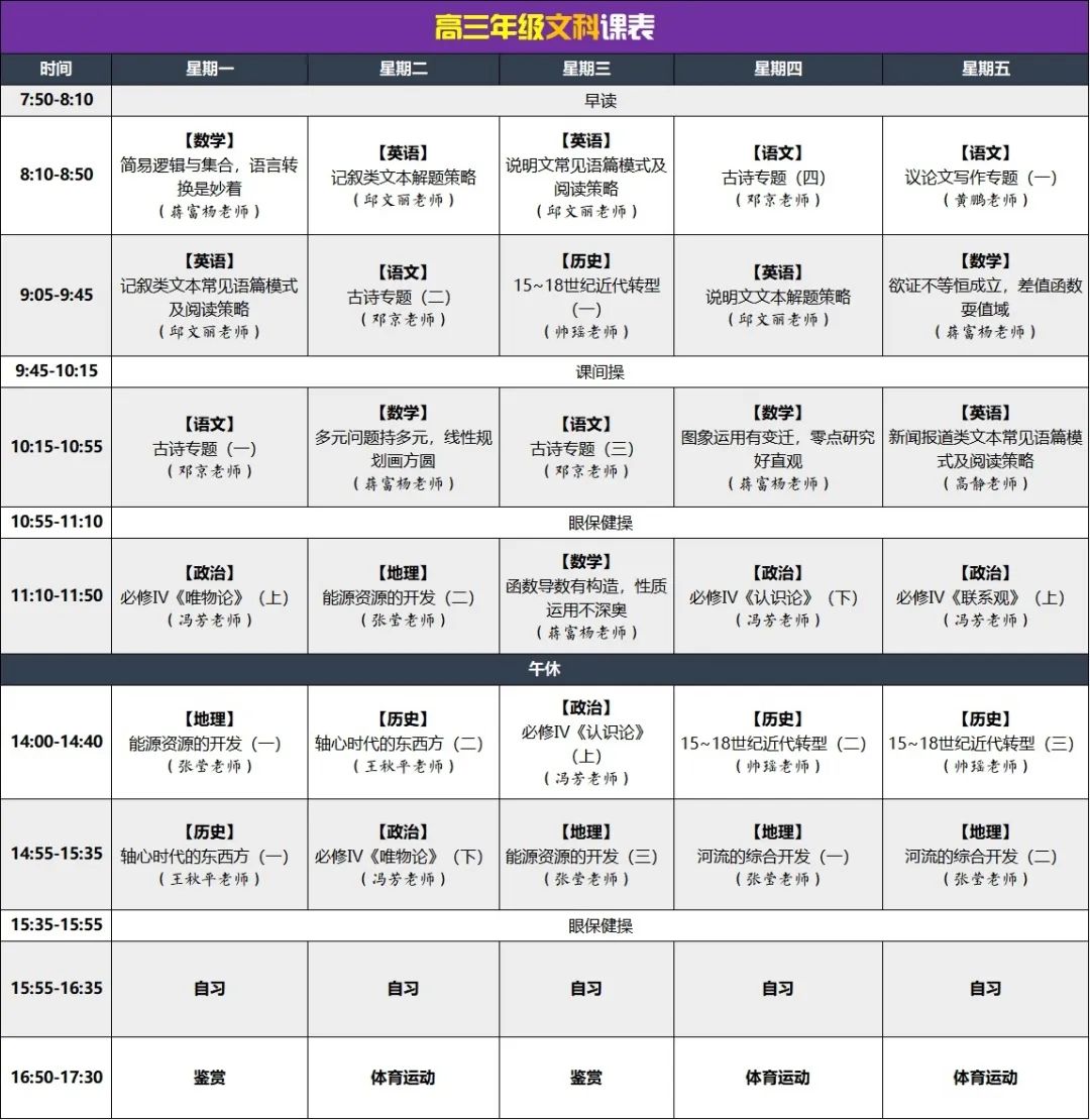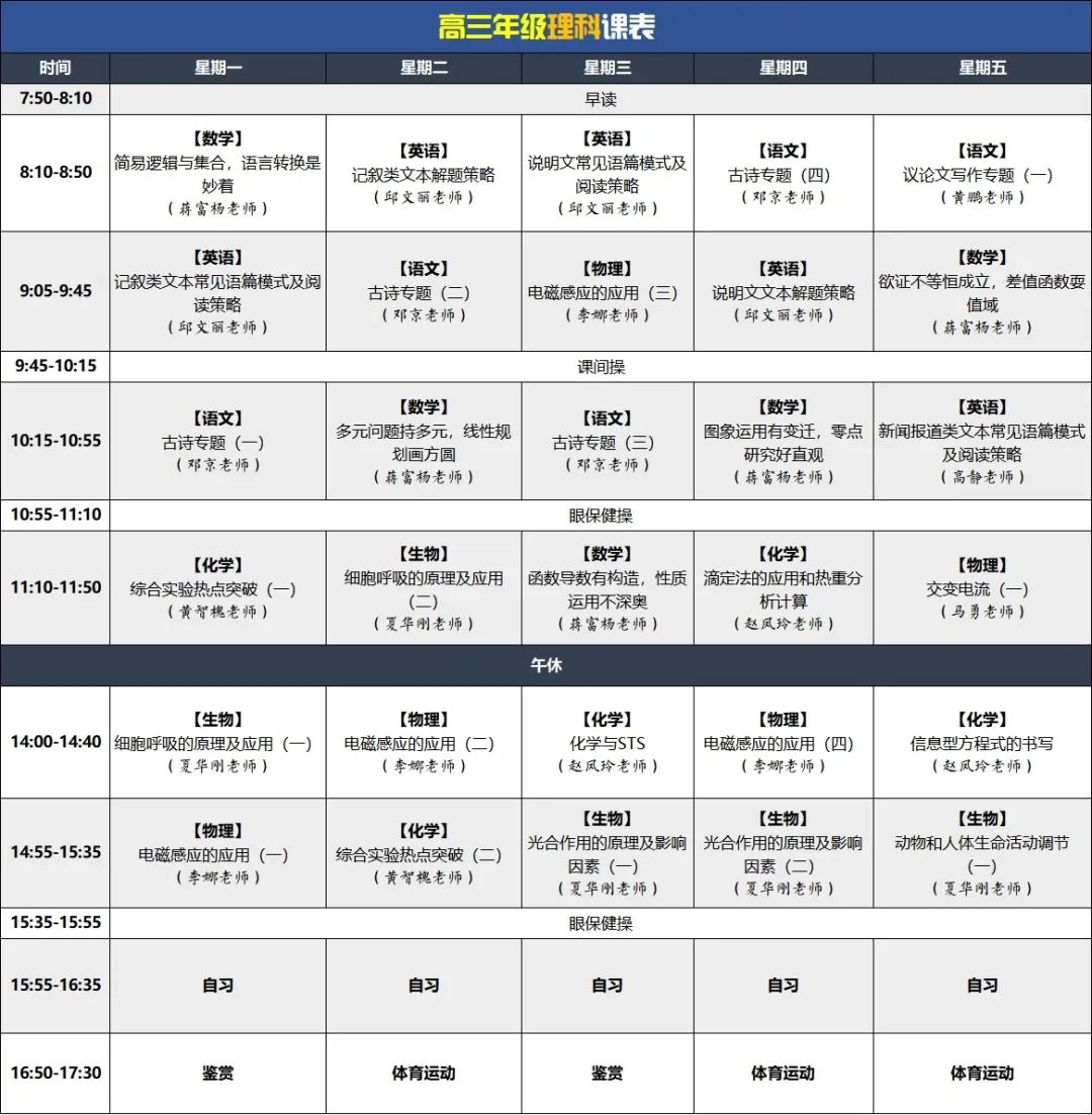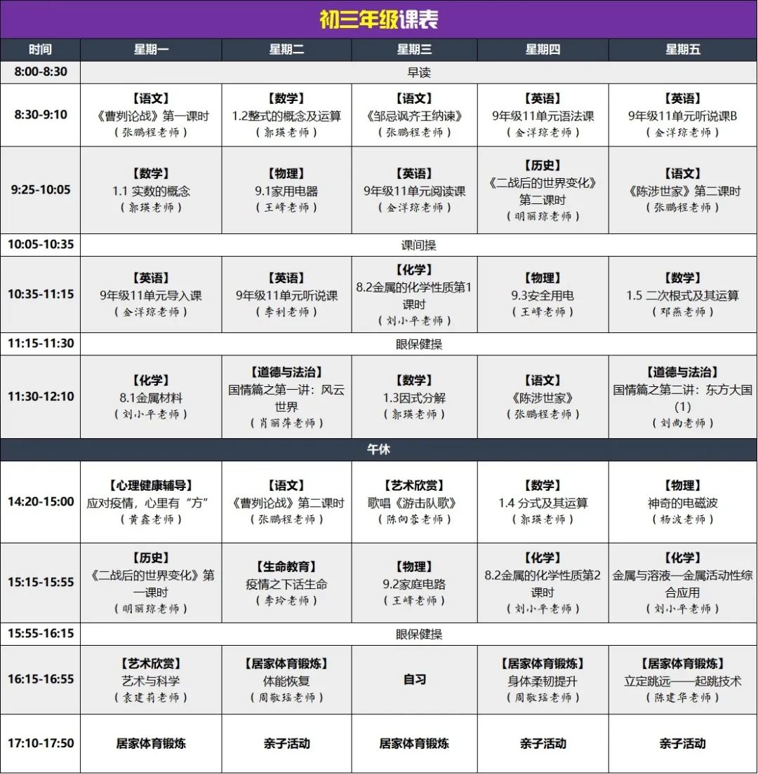 初三、高三年级课程由成都市教科院打造的成都数字学校提供。以下课表根据成都数字学校课表编制。