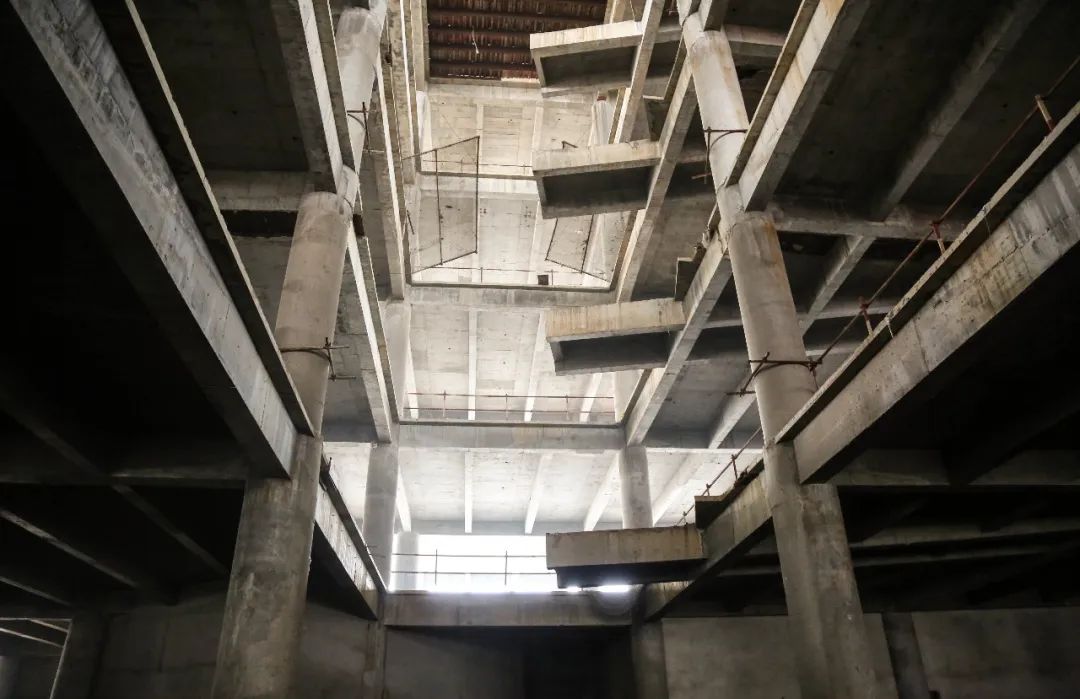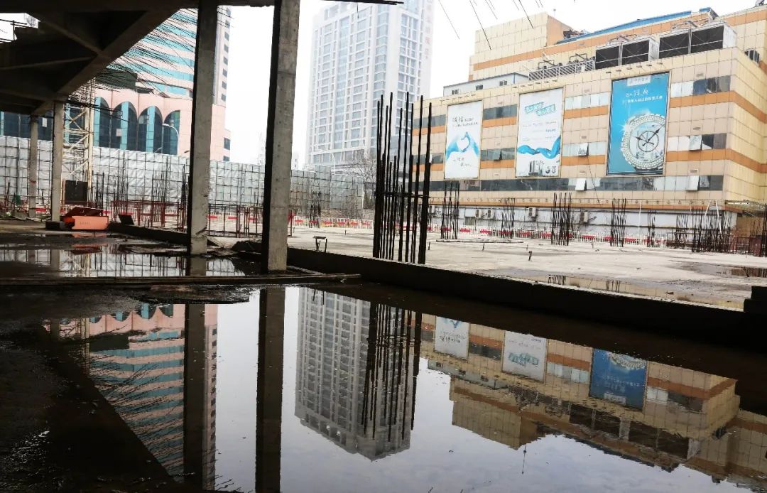 这座2012年开工建设的大型商业体,2015年因资金问题停工,风吹雨淋中陷入无法自拔的困境。