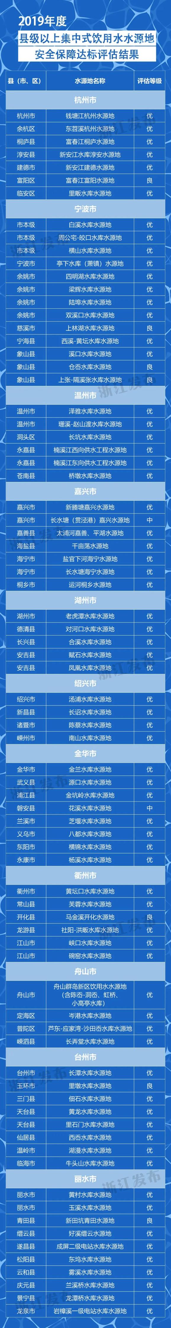 原标题:《69个“优”!浙江公布2019年度县级以上集中式饮用水水源地安全保障达标评估结果》