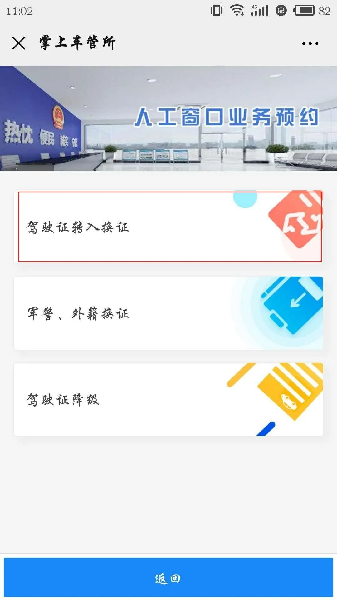 “人工窗口预约办理驾驶证业务”