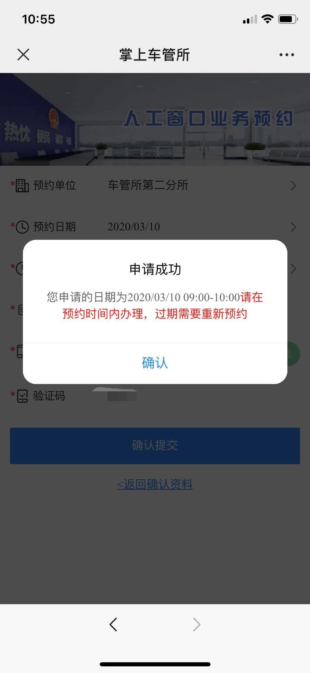 点击“确认预约”