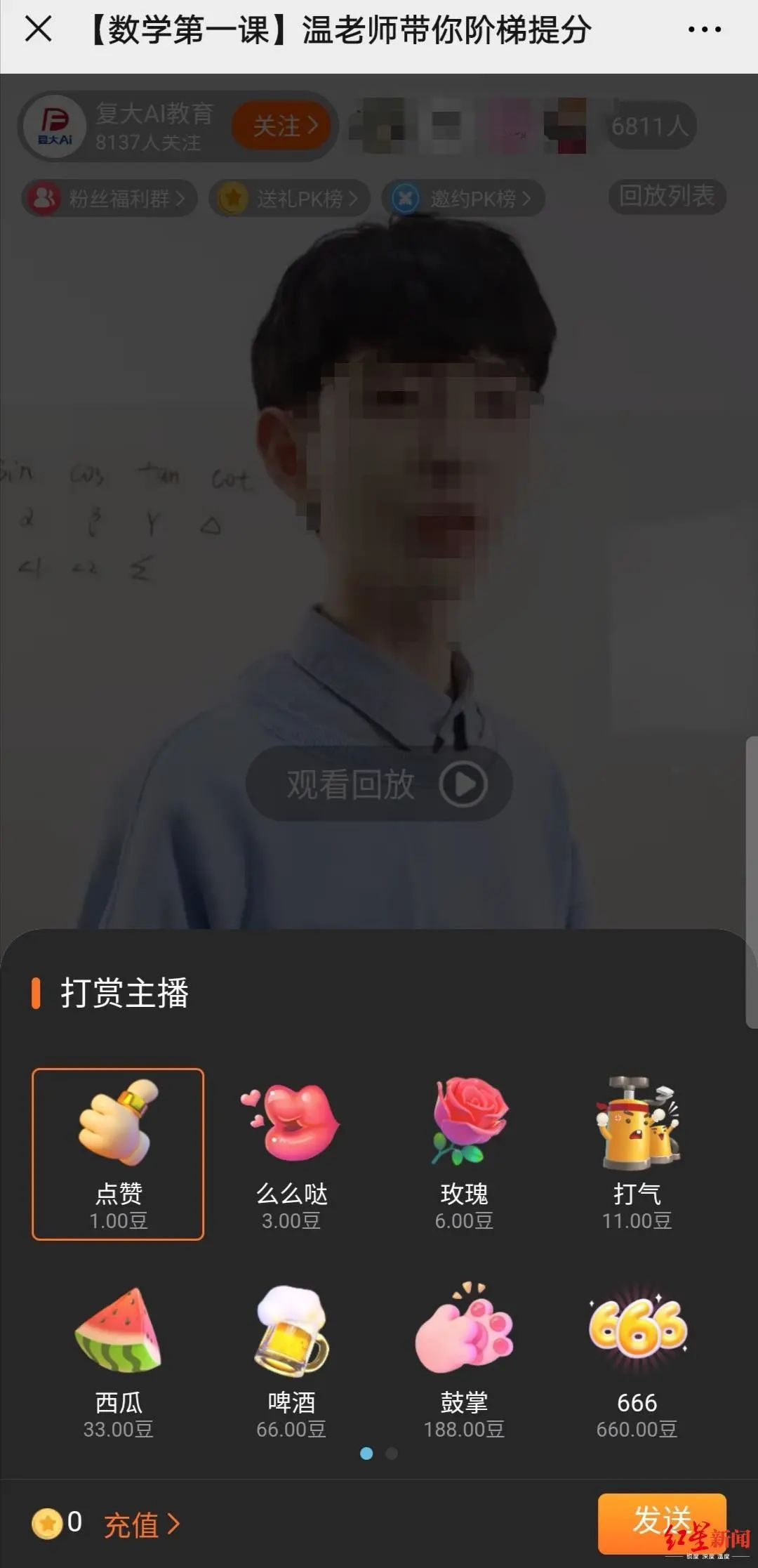 此外,红星新闻记者查询到,本月初,河南省教育厅发布相关通知,要求排查直播课程中的打赏行为以及低俗有害信息。