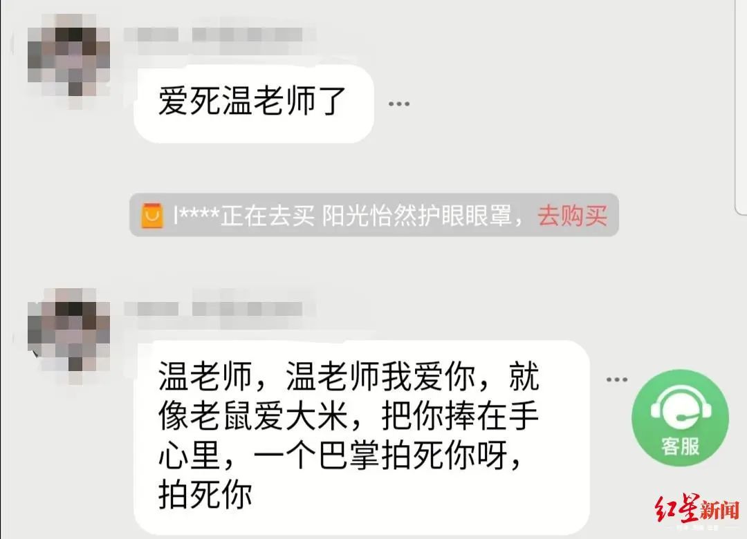 就在红星新闻记者浏览商品时,用户成功购买周边商品的消息不时在页面滚动显示,让温姓教师周边商品的销售显得十分火爆。