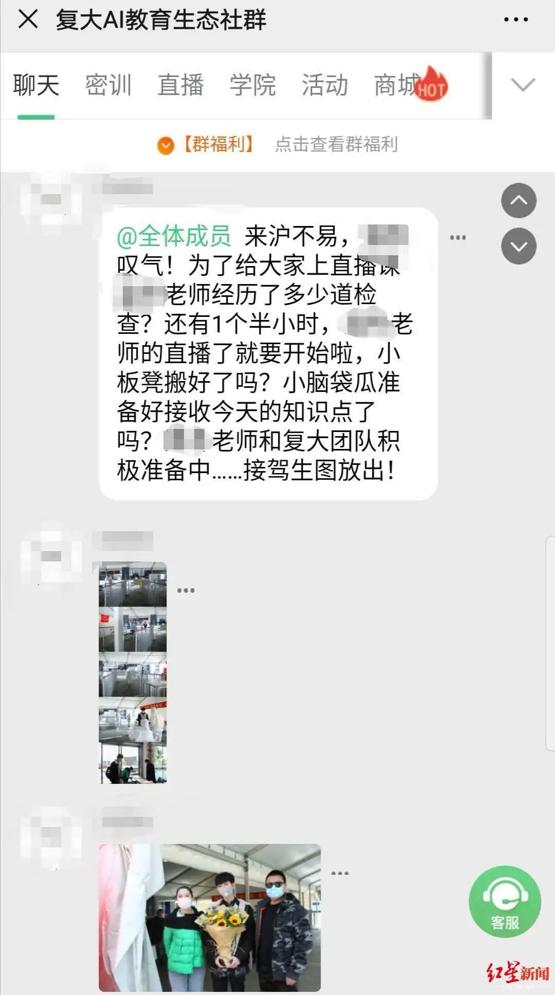 值得注意的是,当粉丝福利群中不少学员表现出对温姓教师颜值的迷恋时,复大AI工作人员并未予以引导或制止,甚至还放出当天“接驾生图”。