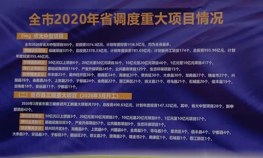 其中赣州有重大项目共70个