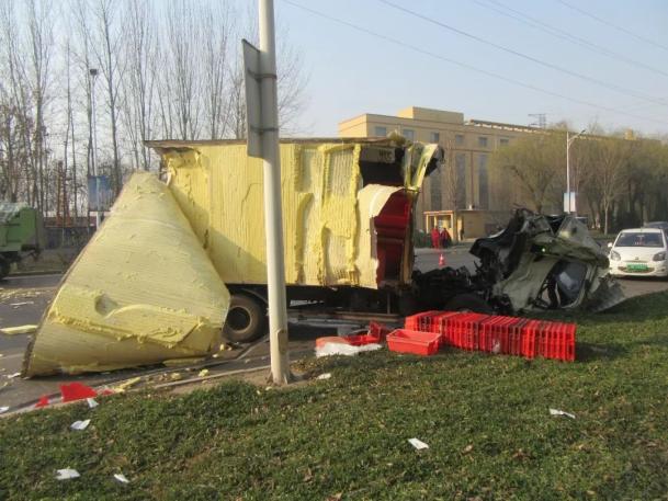 在山东德州,去年12月13日,92年出生的尚某驾驶一辆厢式货车行驶中拨打电话,导致车辆失控冲入对向车道与一辆绿色重型自卸货车相撞,厢式货车严重受损,尚某经送医抢救无效死亡。▼
