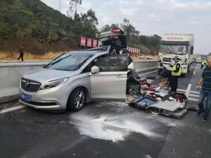 去年12月17日,沈海高速广东境内往湛江方向,一辆重型厢式货车一头撞上一辆小轿车,致轿车司机及车上4名乘客当场死亡、另有1名乘客受伤。后续调查显示,轿车在高速公路行车道内违法停车且未设置警示标志,而货车司机在事发一直在玩手机。