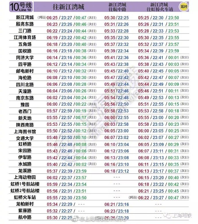 为切实做好疫情防控,保证地铁运营结束后有充足的夜间清洁消毒时间,3月13日,上海地铁10号线延时运营。其他1、2、7、8、9、13号线周五、周六不再实施延时运营。
