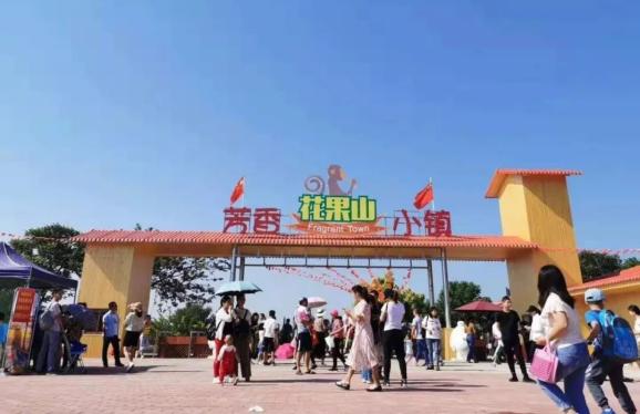 花果山芳香小镇位于广州市花都区美林湖大道边,小镇园区面积达400多亩,包括芳香小镇主园区及孔雀园区,其中水库面积达100亩,园区周围还种植有2000多亩的芳香植物(澳洲茶树、沉香、檀香、香茅等),目前芳香小镇将以芳香植物为主题,打造成芳香植物种植、采摘、研发、生产提炼、科普、研学为一体,集吃、住、玩、养生的特色小镇。