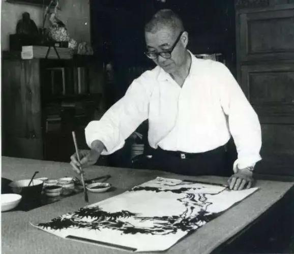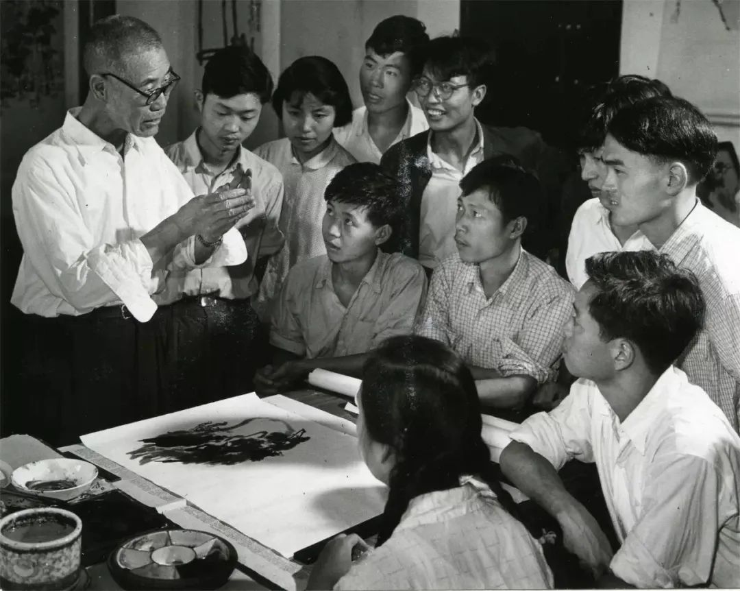 给学生示范时的潘天寿