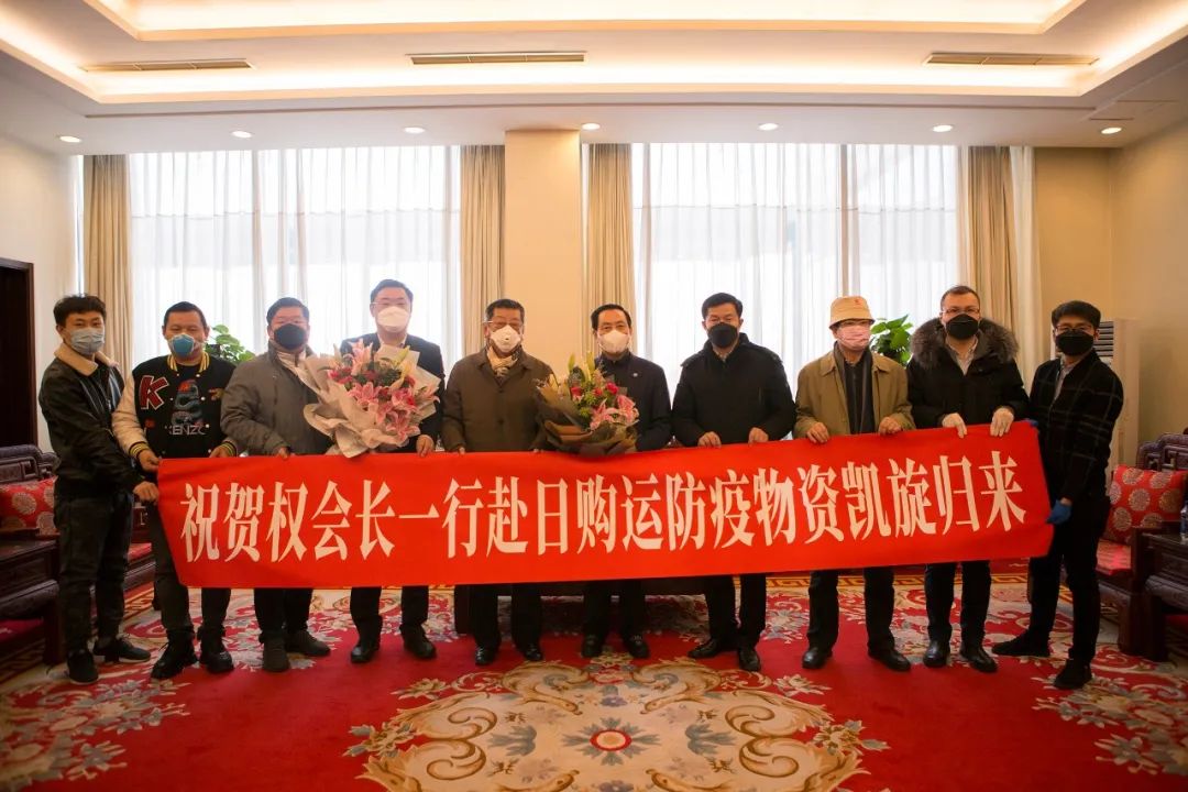 由于日本也出现了新型冠状病毒引发的肺炎疫情,此次带队前往日本风险重重,但形势迫切,时不我待,权顺基会长决定16日即刻奔赴日本运回物资。临行前一天,协会党支部为会长一行举行了简短的壮行仪式。仪式在严肃紧张的气氛中简短举行,协会执行会长刘虹路与秘书长陈军表示,在此严峻疫情情势下,会长冒险亲临一线,后方秘书处将竭尽全力做好国内协调事宜。常务副会长杨书华说,会长不畏疫情风险,冲锋在前,亲自去日本采购抗疫物资的行动,令人感动和鼓舞。作为会长团成员将全力以赴,尽最大努力投身于抗疫行动之中。
