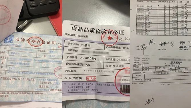 事项:对当日配送的所有食材的台账、动物检疫情况、肉品品质检验情况等进行逐一检查,食材合格、票证齐全方可进行加工。