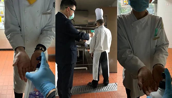 事项:每天,大厨上班第一件事,就是接受我们工作人员的“体温打卡”,健康晨检合格才能进入操作间哦。