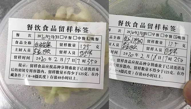 事项:每餐备餐前,都需要按要求对菜品进行留样封存。