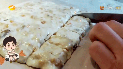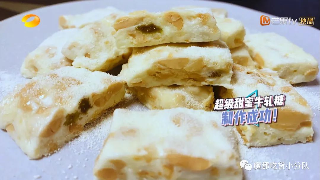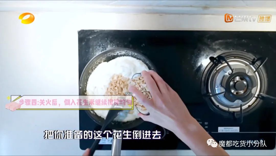 3⃣️混合坚果:关火加坚果,戴手套/用铲子把坚果和牛轧糖混合均匀