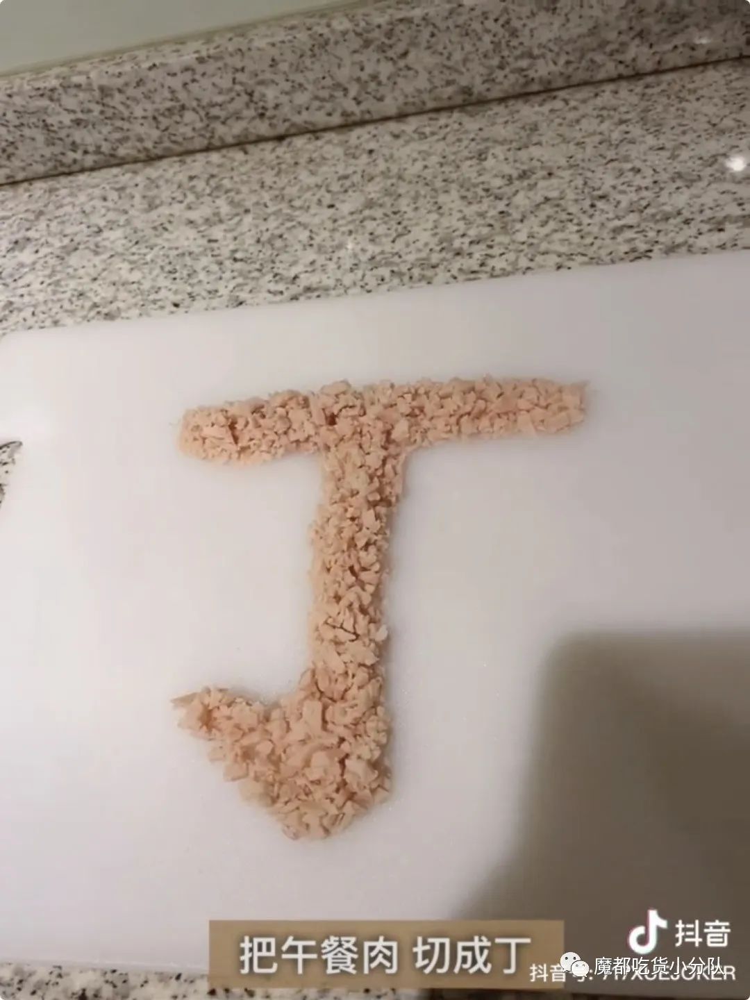 2⃣️倒油热锅,放入米饭、午餐肉、葱,可以挑一些最干的葡萄干,来增加咀嚼时的难度